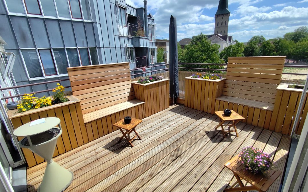 Am Don­ners­tag, den 12.06.2025 hat die Tages­stät­te mit Häpp­chen und alko­hol­frei­en Cock­tails fei­er­lich die neue Ter­ras­se eingeweiht.